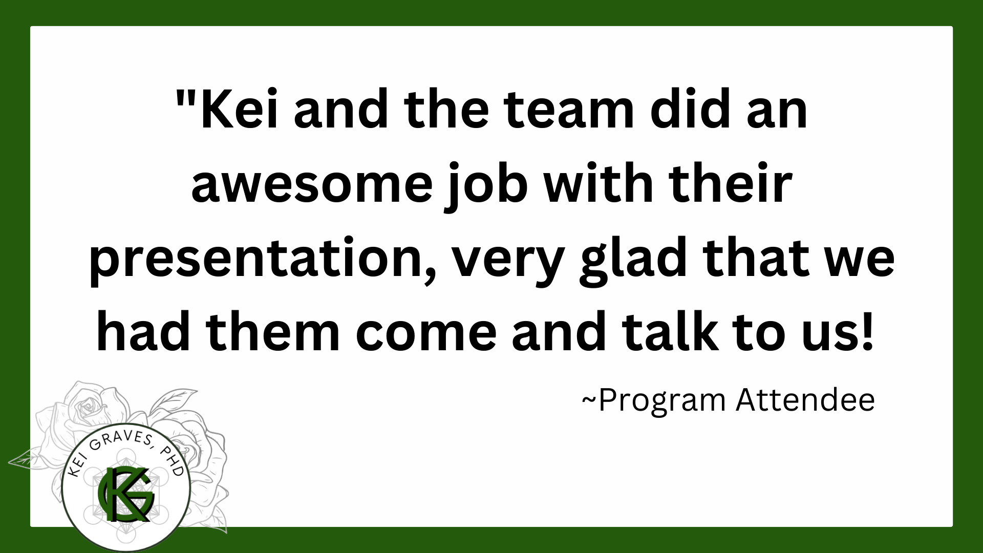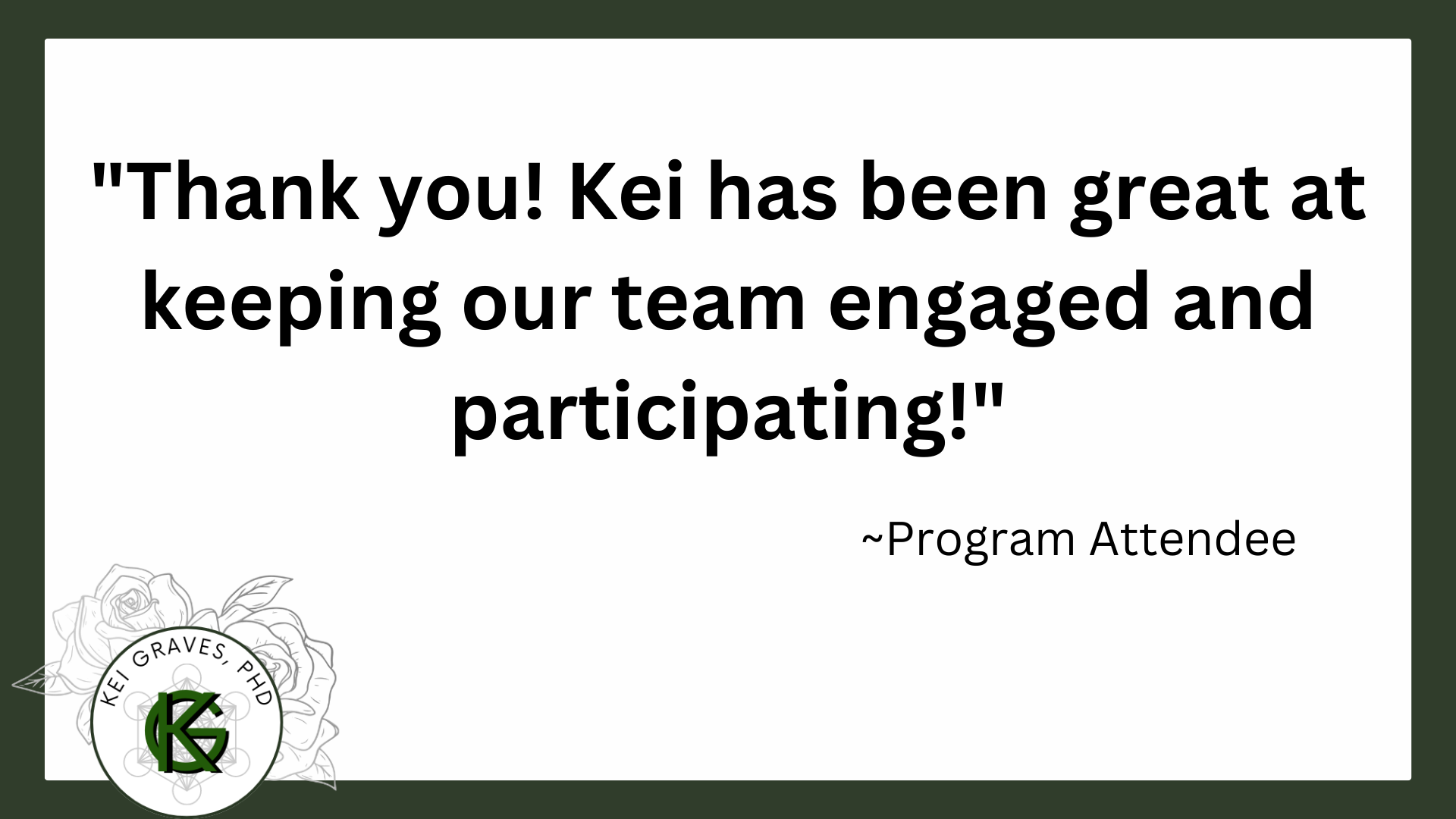 My name is Dr. Kei (pronounced “K”) Graves, and I’m a passionate, authentic, and engaging leader with a human-centric approach to everything I do.
